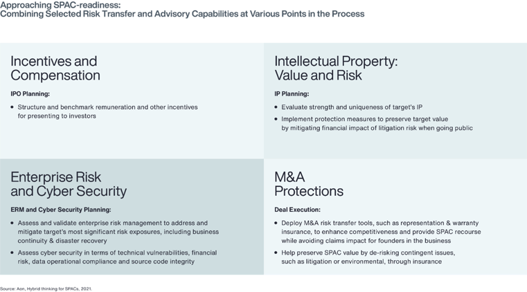 The intense time pressure to close deals or hand back money also poses governance challenges, says Andrew Ballheimer, Senior Advisor, Aon EMEA M&A Advisory Board. “Governance in SPACs can, depending on the circumstances, be fraught with conflict issues for this reason,” he says.